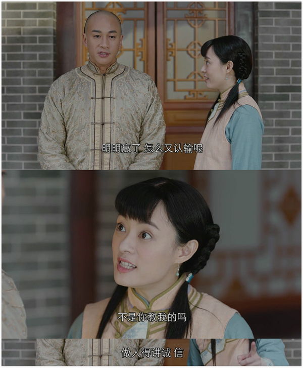 吴家老爷与少东家开明诚信、光明磊落的人格,也影响了吴家东院的家风。吴家丫鬟不因周莹出身江湖就看不起她,吴家学徒房上下认可佩服周莹的才能,东院一派和谐欣欣向荣,基业百年不倒、生意泾阳第一。