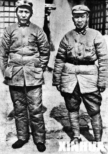 1936年长征胜利后,毛泽东和朱德到达陕北后合影。