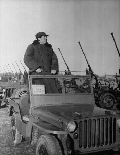 1949年3月,毛泽东检阅我军第一支高炮部队。(解放军画报)
