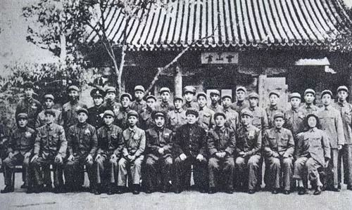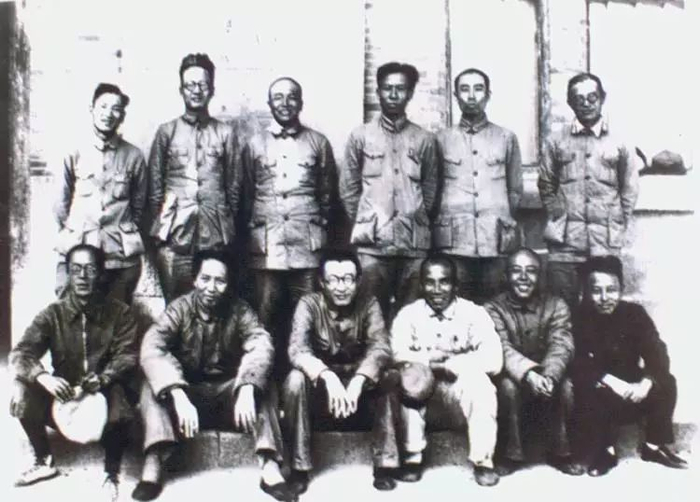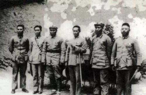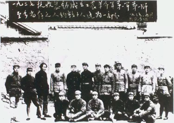 1927年9月,参加秋收起义的部分同志1937年5月9日在延安合影,左三为毛泽东。