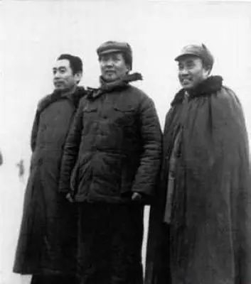 1946年11月19日,周恩来率中共代表团部分成员飞返延安。这是他回延安后和毛泽东、朱德在一起。