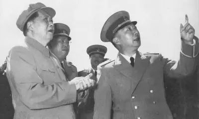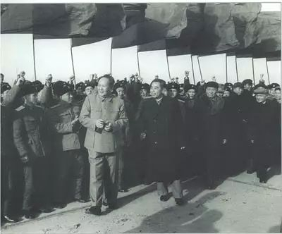 1956年,毛泽东和聂荣臻等观看空军飞行表演。