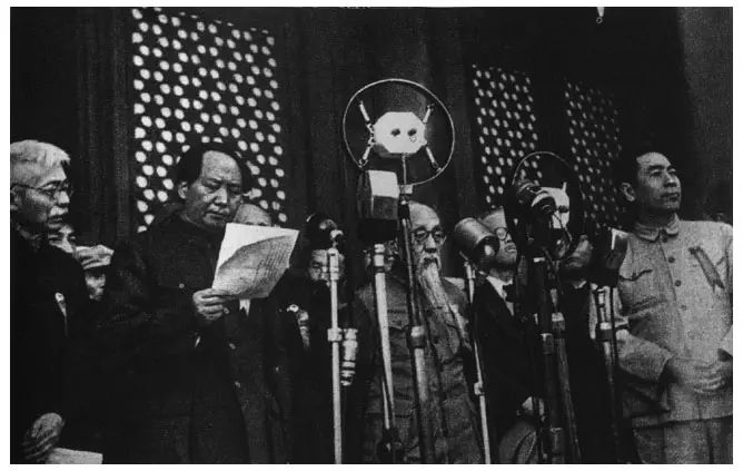 1949年10月1日,毛泽东在天安门城楼上向全世界庄严宣告:中华人民共和国中央人民政府今天成立了。