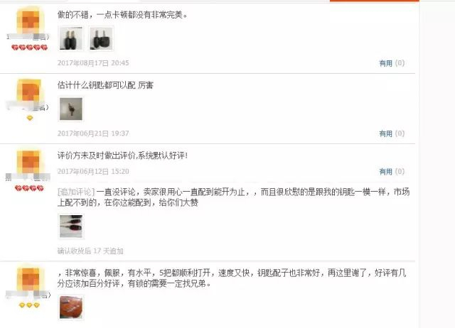 在一家名为某锁具的店铺里,就提供看图配钥匙的服务。在商品介绍一栏里清楚的写到,“只要你提供钥匙图片我们就可以给你配出钥匙”的字样。店铺详情显示,该店是主营锁具的五年皇冠老店,其中在图片配钥匙这项服务中已经成功成功交易1645次,累计评价也有500多条。在累计评价中,有不少买家给出了“配的很好,一点卡顿都没有”、“估计什么钥匙都可以配厉害”等评语。