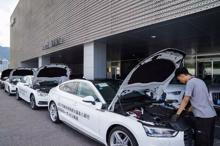 三明盈众致远奥迪4S店专业技师为“八闽行”车辆做检测