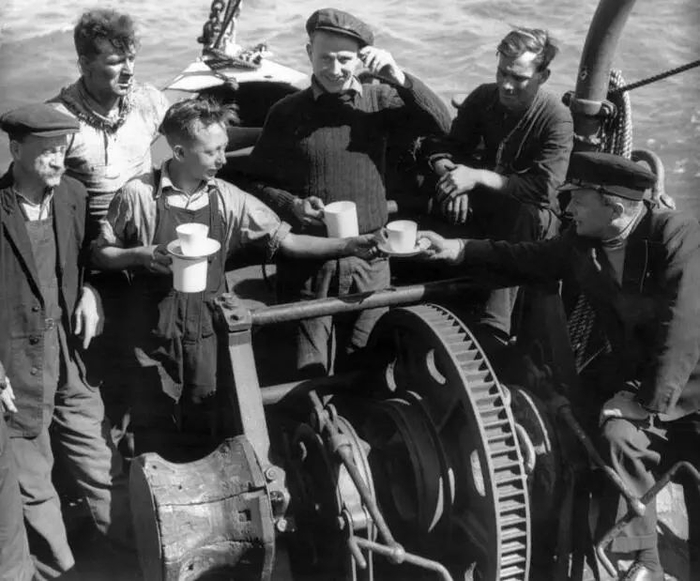 英国人似乎啥时候都不能忘了喝茶,哪怕是被追得灰头土脸的时候,茶也不能忘:士兵被鱼雷吓坏了,喝茶;好不容易挤上船了,喝茶;终于到家上火车了,喝茶……