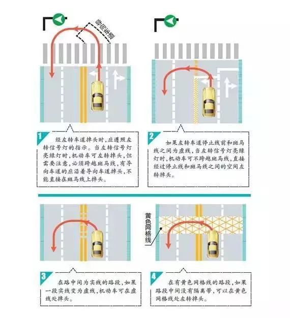 以上六种就是最常见的掉头方式了,其中第一种和第六种最容易犯错,大家平时一定要牢记掉头方式,轻易不要犯错,以免造成违规扣分哦!