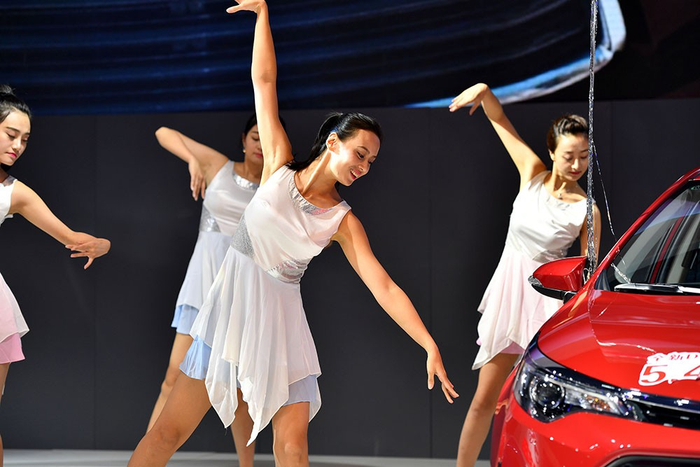 9月6日车展开幕以来,昨日适逢双休日,车展进入高潮阶段。各家参展商使出浑身解数向前来买车的市民推销自己的品牌。一汽丰田现场推出教师节优惠活动,凭教师证可以当场获得价值900元的交强险。