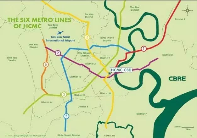 CBRE报告认为根据距离地铁规划线路远近的差别,胡志明市各地段房价将在地铁开通后增加5%至40%不等。