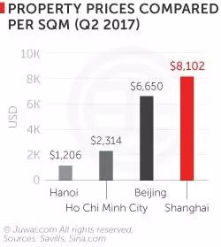 居外网综合第一太平戴维森(Savills)等报告数据得出,胡志明市的平均房价水平约为京沪两地的三分之一,河内的房价水平更只有京沪的六分之一。