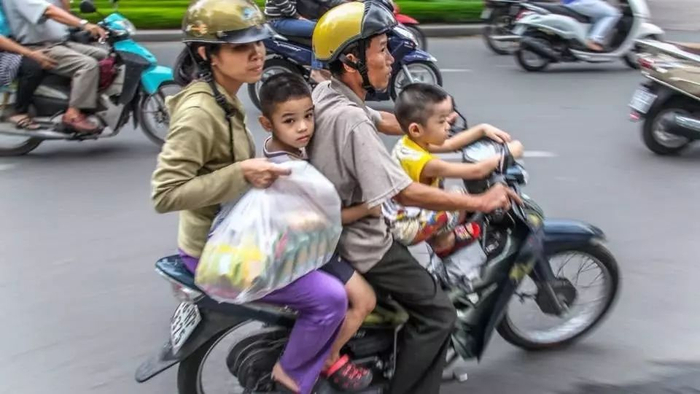 ▲越南人习惯全家乘摩托车出行 (图片来源:AIP基金会)