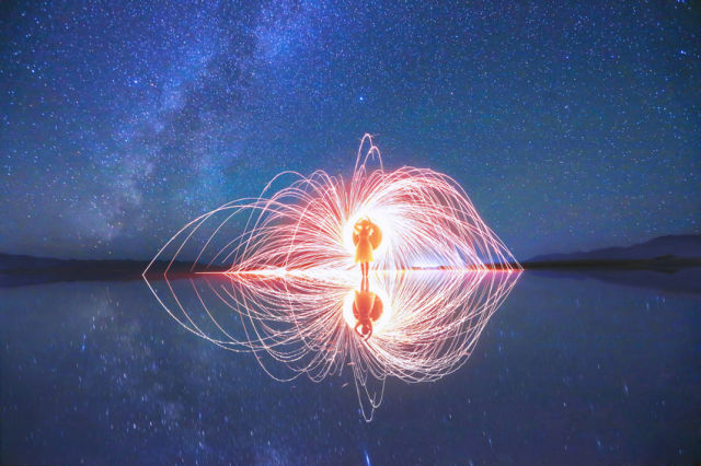 为了好照片,她不怕重复的劳作。在盐湖的5天时间里,每天几乎都是同样的节奏:下午三四点出门,拍摄蓝天白云直到日落;太阳落山后躲回车里,静待月亮在凌晨1点落下,开始一晚上的拍摄,拍到四五点钟星星稀稀拉拉看不见了,再回车里取暖,等待清晨7点的日出。