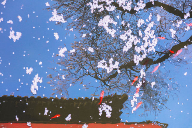 故宫不止有弘大的气魄,也藏着许多温柔的细节。暮春时节御花园一池落花,红色锦鲤穿行在宫墙的倒影之间。