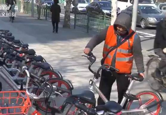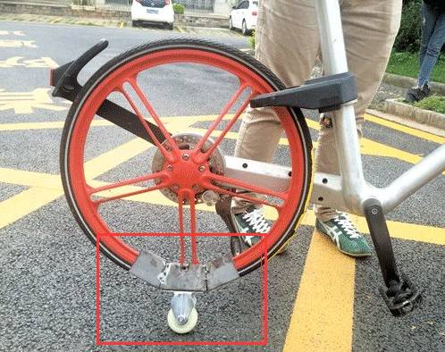 因为每天都要整理大量共享单车太累效率太低,以至于昆明一工作人员发明了“推车神器”,专门用来推那些乱停乱放的共享单车。