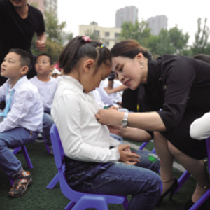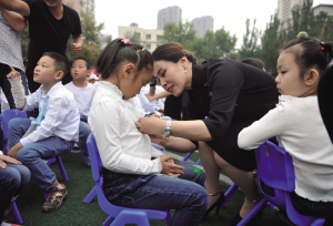 岐山一校焕新校区校领导为新入学的孩子们戴上校徽 ■华商晨报记者 张诗尧 摄 本报讯(华商晨报记者 杨晓明)“小眼睛”“看老师”,这两个口号喊完,原本乱作一团的小豆包们又坐回板凳上。 昨日,在岐山一校焕新小区举行的开学典礼上,记者发现新一代的”95后“已经成为小学老师,而他们在管理“10后”的一年小豆包还很有一套自己的办法。 老师:“小眼睛” 学生:“看黑板” 9月8日,岐山一校焕新校区开学典礼上,新一年级的11位班主任教师全体亮相,最年轻的女老师是“95后”。 岐山一校集团的谷威校长、副校长潘艳和班主任老师们为新入学的孩子们佩戴校徽,并祝贺他们从这一刻起正式成为学校大家庭中的一员。原本安静坐着小豆包们,在兴奋中突然乱了队形。 “小眼睛。”1年8班班主任李诗文老师边说边举起一根手指,“看老师”,孩子们接着下一句。几次口令之后,孩子们又安静地坐在了小板凳上。 李诗文说:“这种口令教学是在网上学的,对管理纪律方面很有效,如果让孩子集中注意力看黑板,就说‘小眼睛’,孩子们就会说‘看黑板’。” 李诗文就是名“95”后老师,她说,自己经常去跟优秀的老师“学艺”,认真思考,如今对待孩子们有了自己的一套办法。每到下课,她都会告诉孩子们课桌收拾整齐,“这是培养孩子的习惯。”李诗文说,这个阶段培养孩子习惯,让孩子懂规则很重要,但是她很少说教,而是通过在课余时间给孩子们播放一些宣传片、阅兵式等节目,让孩子们学规矩。此外,她还看很多如何成为一名优秀班主任类的书籍,多参加培训,找学习的机会。 年轻老师有压力也有新思路 李诗文说:“跟孩子们在一起,最重要的是鼓励。即使批评过后,最后仍要奖励。” 在教室老师办公桌里,有一个“百宝箱”,那里藏着小孩子们都知道的小礼物。“这都是我自掏腰包给孩子们买的,多是一些小本子、铅笔和一些女孩喜欢的发卡。” “这些礼物主要是用来奖励孩子们的。”李诗文告诉记者,如果课堂上有小朋友讲话,我会轻轻拍拍他,告诉他讲话是不对的,一定要给予明确的批评。下课之后还要把孩子叫到身边,问他到底错在哪里,如果表现好改正过来就会奖励。这时百宝箱里的小礼物会派上用场了。 在传统观念上,很多家长喜欢年长有经验的老师,这让年轻的老师们更有压力,但也会更加努力。 记者现场采访多位家长,对于年轻班主任教学这一块,很多家长表示,对年轻老师并没有排斥,反而觉得年轻老师更有活力,与孩子之间更容易沟通。 执行校长屈玉国说,新学期开学有很多年轻的老师加入进来,她们年轻有活力,新一代90后老师也有更多接受新事物的能力,在教学方面也有更新的思路和想法。孩子们都很喜欢他们的班主任老师,这对教学来说也是非常有利的。也希望年轻的老师也在教学工作中不断成长,成为更优秀的教师。 |