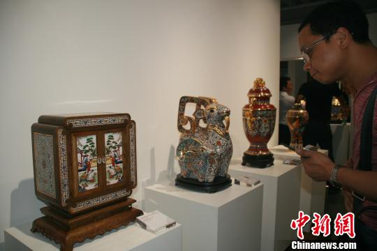 “寻找珐琅之美——北京工艺美术大师精品投资基金大师作品展”9月9日在北京荣会艺术中心举行。 李妮 摄
