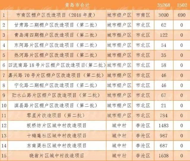 2018年山东全省计划改造棚户区共计1249个项目、699704套。其中,青岛共有45个项目、35268套!