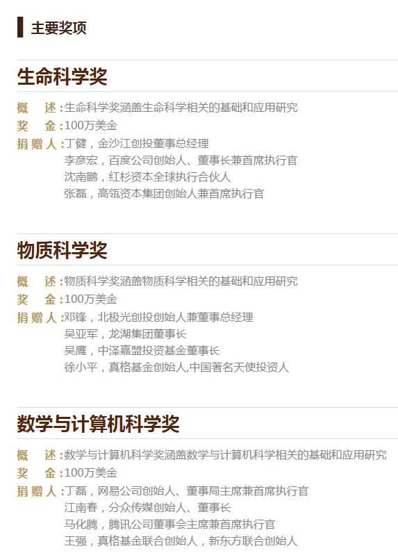 今年除“生命科学奖”、“物质科学奖”,还增添了“数学与计算机科学奖”,旨在奖励在大中华区取得重要原创成果的科学家。