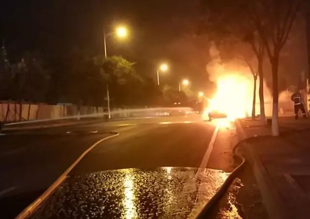 捷达轿车行驶过程中,发动机盖内突然起火,司机赶紧停车,车上人下来后试图用车载灭火器扑救,但收效甚微。消防部门赶到后,及时将大火扑灭。