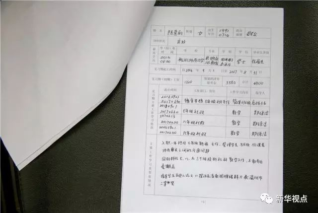 这是8月23日拍摄的陈莹丽的考核鉴定表。新华社记者 张铖 摄
