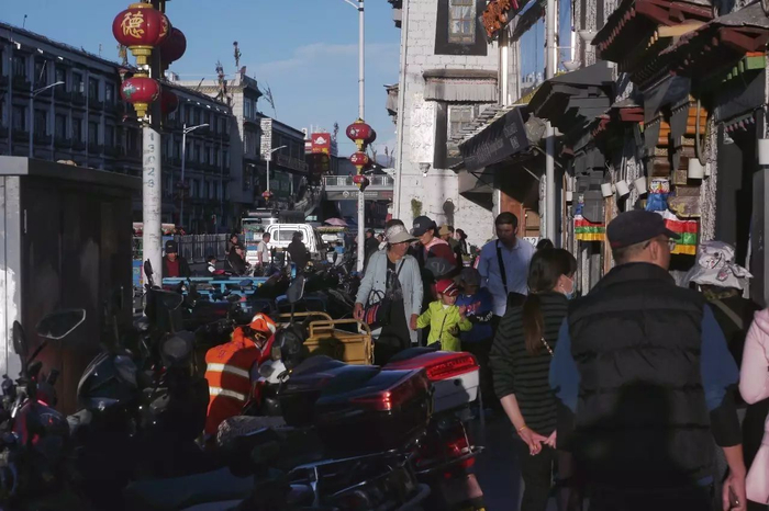 经过短暂的休息,五点钟离开酒店,我们步行穿越几条街,由于多日来的适应,和缓慢海拔高度的爬升,这次行走在拉萨的街头,感觉还是蛮轻松的。