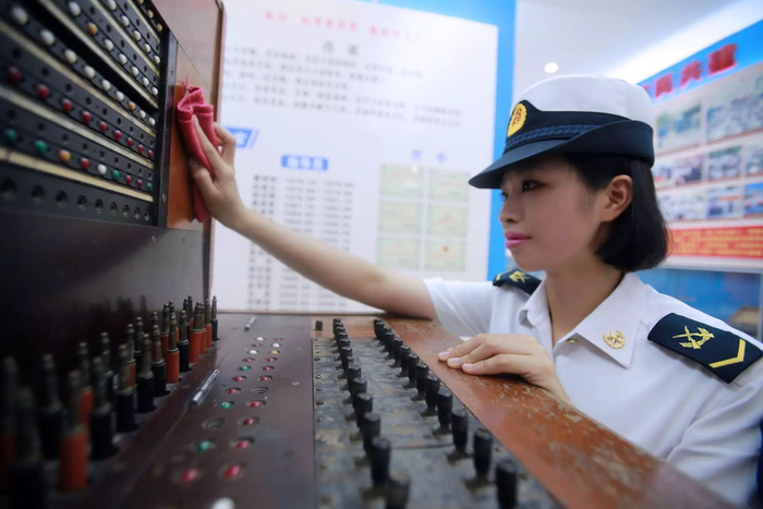 9月5日,南海舰队某基地通信站军史馆内,1名即将退伍的话务兵最后一次小心翼翼地擦拭退役老装备(陈祥摄)