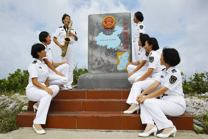 临近退伍,海军西沙某水警区即将离队的几位女兵一起来到石岛,留下珍贵的合影。她们当中有一位藏族姑娘,笑容格外灿烂。姑娘名叫卓嘎,是首位登上西沙永兴岛的藏族女兵。