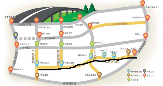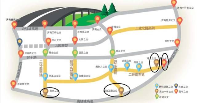 全福立交桥、燕山立交桥、腊山立交桥都将直通新建成的高架桥,这些原来的“断头”高架将彻底被打通,直接连接济南绕城高速。