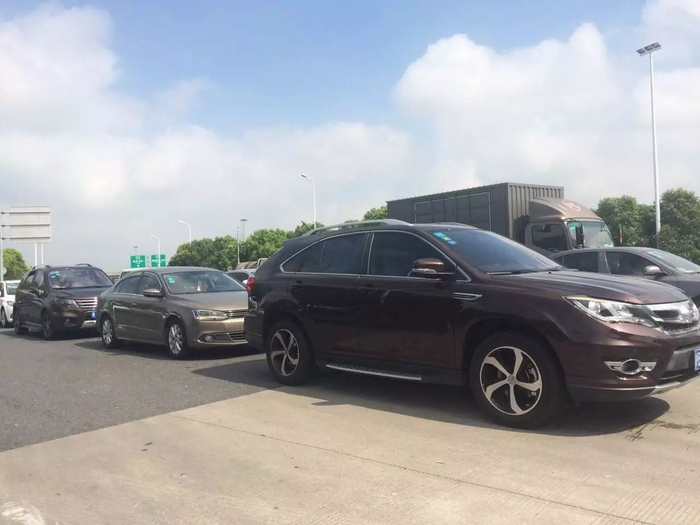 记者行至南六公路道口,收费站全部6条通道全部开启,工作人员在道口前疏导车流,不过前方车流依旧一望不到尽头。