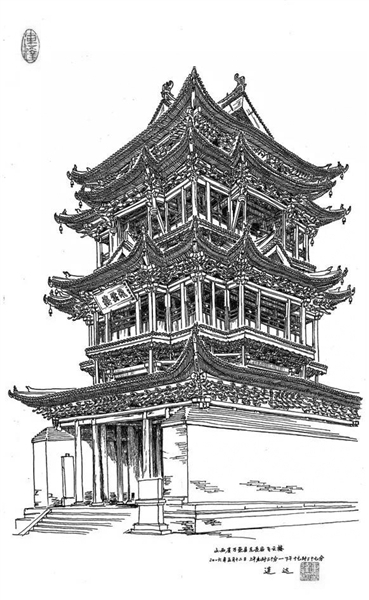 “也许我的写生技法不够专业,建筑结构的表现也不够严谨,但这是我对古建筑热爱情怀的表达和对古建筑现状的记录,是我人生坚实的足迹和个性的展现”。