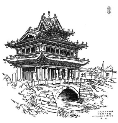 连达画笔下的古建筑