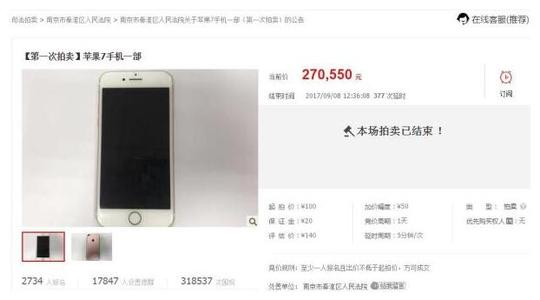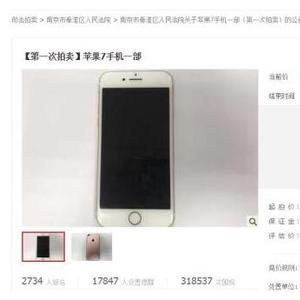 一部苹果7手机在司法拍卖中拍出27万余元“天价”一事备受关注。9月9日,南京秦淮区法院通报称,该院对相关情况展开调查,并对其中两名参与“恶作剧”的行为人分别罚款一万元和两万元。