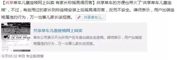 近日,一款共享单车的周边产品——座椅也火了!有些用过的家长称座椅安装上后摇晃得厉害,不安全。即便这样,不少“心大”的家长仍在使用。