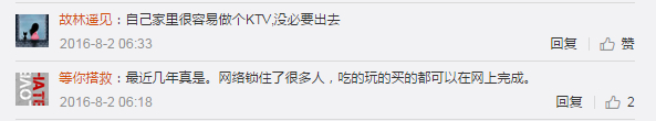 网友@吃饺子不沾醋 称,三线城市出去玩看电影的时候多;另一位网友小不点哥哥则说:“不去KTV明明是因为酒吧更嗨”;还有一位网友认为,社会越发达越不需要KTV这类线下拉拢关系的场地,两杯咖啡一个下午就能解决的问题,为啥还要等到晚上呢?