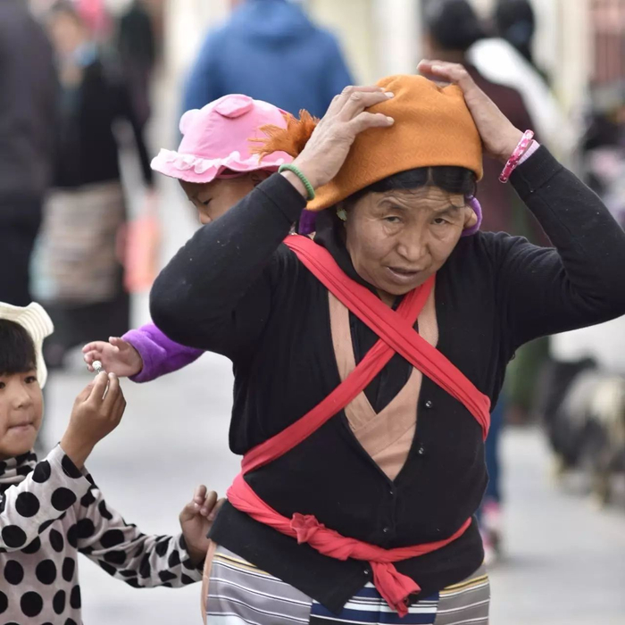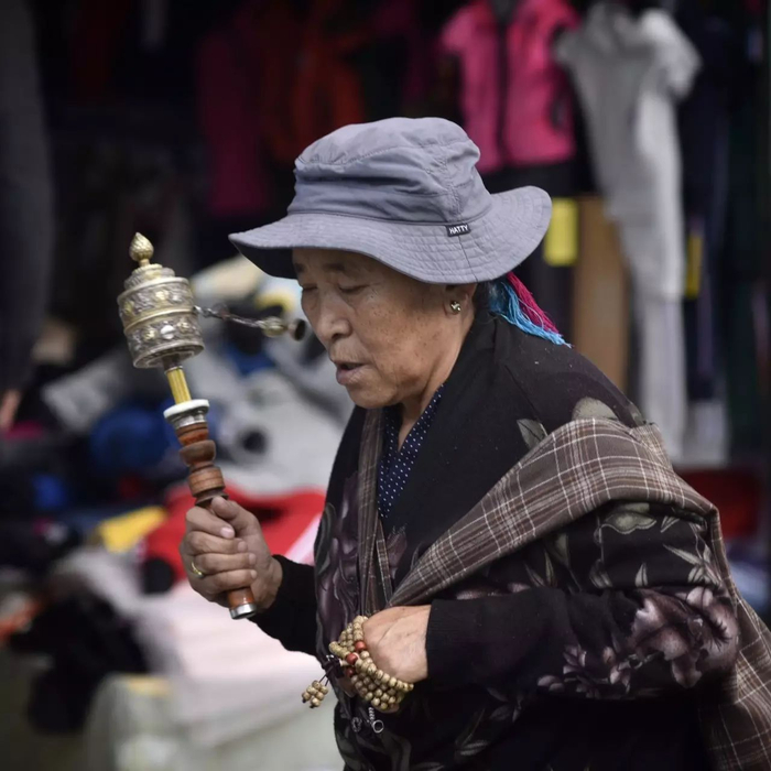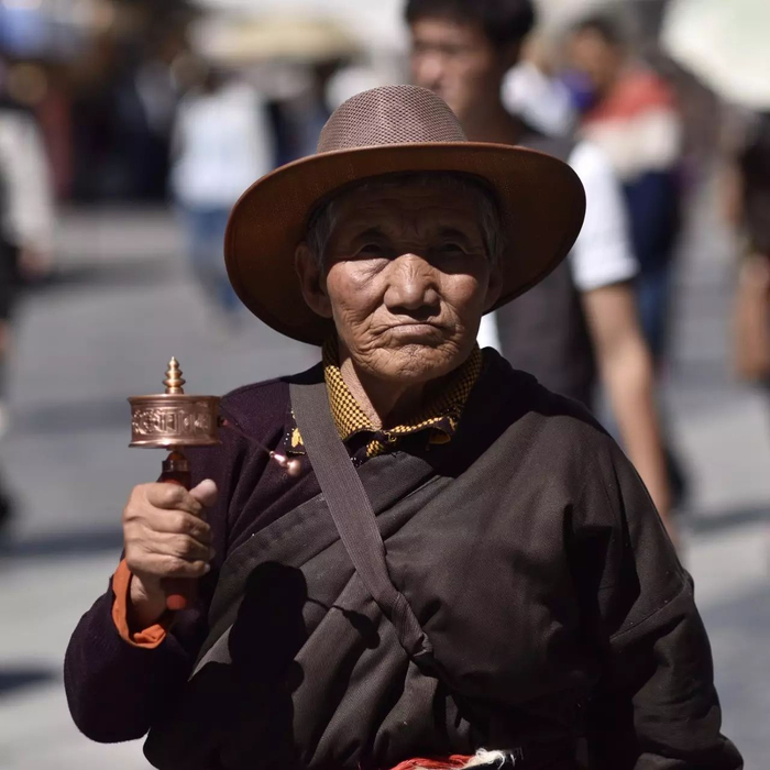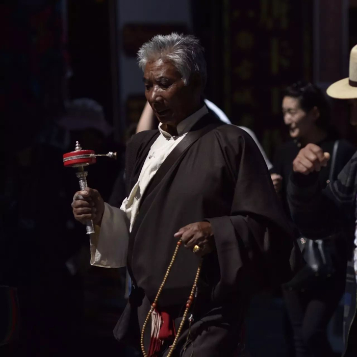 走在八角街头,发现每个行人的表情,都那么虔诚,渐渐地我萌生了拍摄一组人物肖像的念头,于是我举起相机,一边拍摄一边作出大动作的表情,以示意被摄者,有些被摄者还主动要求去,看看自已的形象拍得怎么样,其中还有一位父亲拖着可爱的女儿……