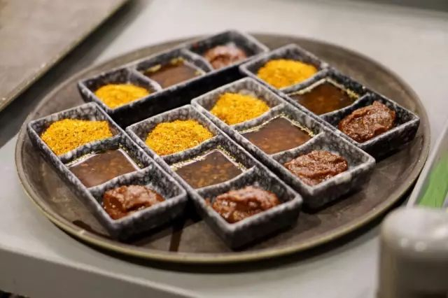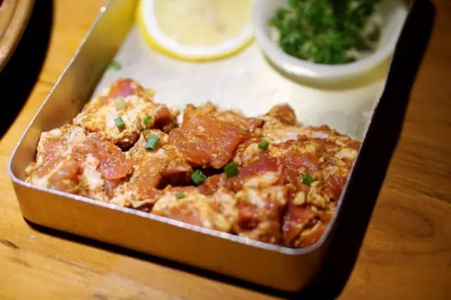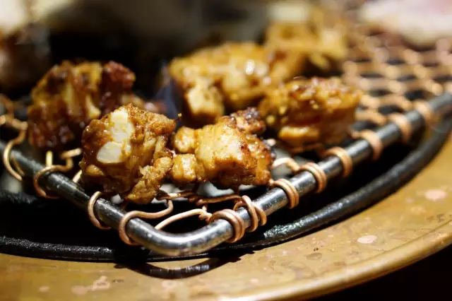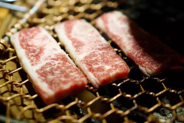 烤制的肉香跟火类是有很大关系的。炎石烤肉使用的苹果炭火,燃烧时有淡淡的苹果芳香。当肉类遇到高温表面会迅速收缩,锁住肉中水分和蛋白质不致流失。 同时木炭燃烧的炭香味也会进入肉中,肉香、炭香合二为一,炭火烤肉,不但香味独特,而且外焦里嫩、鲜嫩多汁。烤牛肉时,放上篦子后,朝上一面出血水,即可翻一面继续等待15秒左右,颜色产生变化就可剪成适宜的小块分享食用。建议搭配椒盐和干料;(干料在三格小料中,椒盐向服务员索取)。