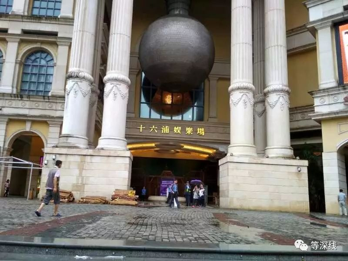8月23日,海水亦将这里吞噬。8月28日,康公庙的管理者指着大门上约有近两米高的几处水淹痕迹说,水漫到了这里了,过几天庙里才会恢复开放。康公庙大门上挂着红色的横幅“一众受灾的街坊们向前来灾难援助的驻澳部队、警务、消防、教护、消洁人员及各界义工团体致以衷心的感谢及敬意,您们辛苦了!”走出十月初五街不远,澳门“十六浦娱乐场“也受到了冲击。记者探访发现,地势较高的“十六浦娱乐场“一楼大厅在23日上午遭遇了进水。赌场一楼进水多日未能恢复正常之时,二楼赌厅依然挤满了赌客。