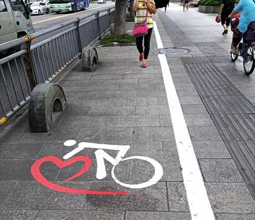 据悉,新施划的非机动车停车点位中间的地面标识,整体式样由“i”、“❤”、“N”、“b”四部分组成,合起来就像是一个人正在骑车,整体寓意为“我爱宁波”。