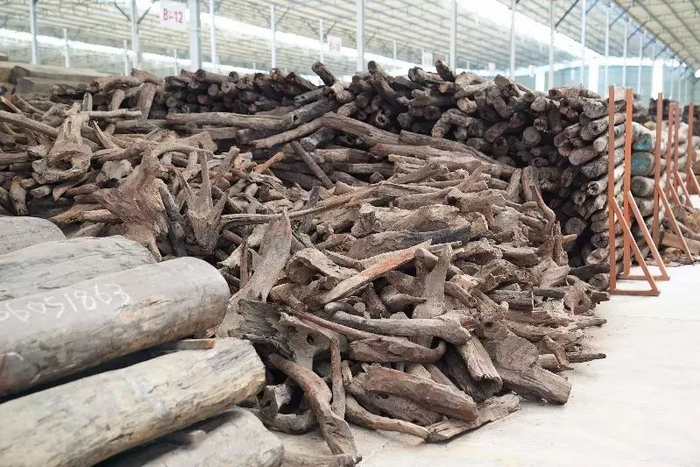 陈明伟带领新闻大篷车团队参观了胜北实业鲤南红木仓储与交易中心一个上万平方米的红木仓储仓库。只见偌大的仓库,红木整整齐齐一堆堆摆放。陈明伟说,这些红木,每一堆都价值上千万元,一年租金只要3万元。陈明伟还收储了好几个房间的越南黄花梨。 每一堆红木上,都用粉笔写着电话号码。陈明伟说,收储的红木多了,对红木的行情价格也是了如指掌,而且都是实时行情。需要购买红木原材料的客户,只要到陈明伟的仓储库房逛一圈,不但了解了第一手的行情,而且现场直接看货,要买哪一家的红木,直接打电话联系。