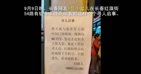 9月9日晚,微博网友发帖称在54路有轨电车的终点处,发现了这样一则《寻人启事》,记者在微博上搜索这条微博,截至目前,累计转发量已经破百。