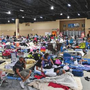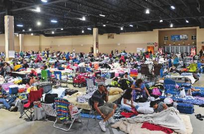 9月9日,人们在美国佛罗里达州迈阿密的一个安置点休息
