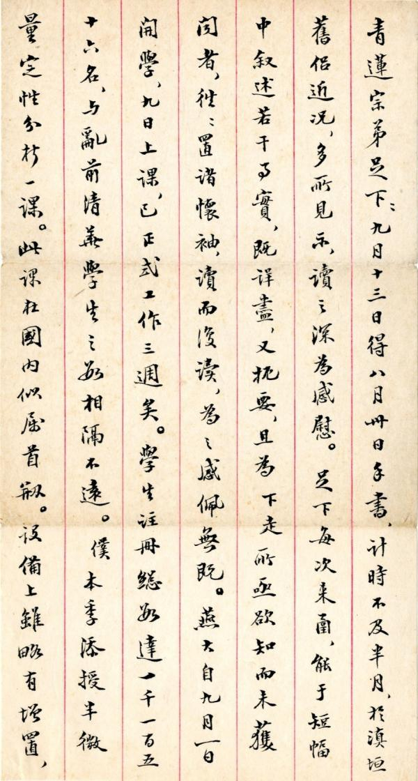 陈衡哲致王云五信(局部) 20世纪20年代