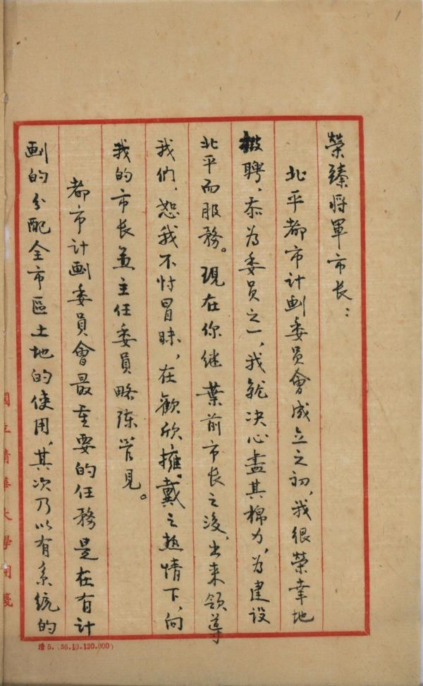 梁思成致聂荣臻市长信(局部) 1949