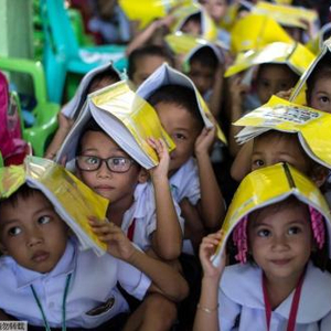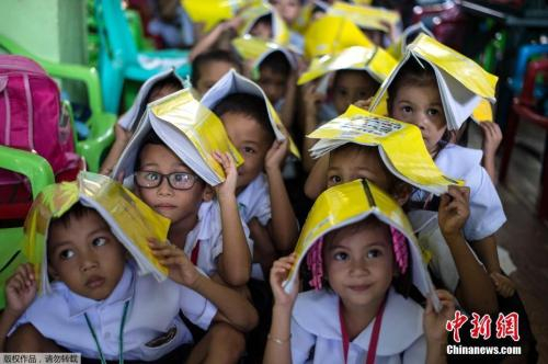 资料图:表情各异的菲律宾小学生。