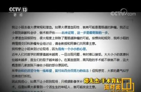 谭先杰:对,后头发现是我多想了,我觉得是我多虑了,那个时候大家都还没有看到她,教授们都说这不做不行,这不做肯定是会死掉的,肯定做,所以根本她来还是不来,结论是一样的。