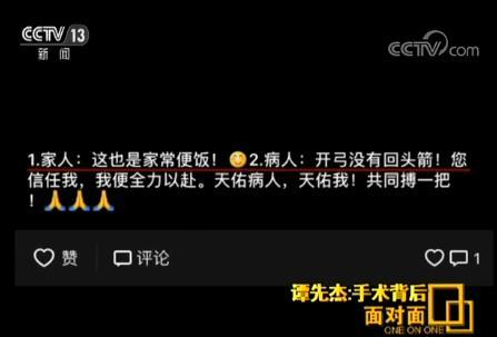 谭先杰:他说如果长假之后,我可以来协调,我亲自来保障,他亲自保障。你想一个麻醉科主任,能够亲自来保障一台普通的手术,我觉得很感动, 当时我说了,我说我真的是非常感动,一个是为病人,一个是为我自己。