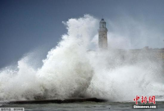 资料图:飓风“艾尔玛”掀起巨浪。