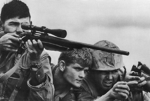 1968年,溪山,美国海军陆战队的狙击手小队。图片来源:WikiCommons越战至今1945年之后,狙击手的重要性在现代步兵战中越发突出。尽管朝鲜战争中狙击手的光芒被大量部署的轻武器和火炮所掩盖,但是到了越战,狙击枪又重回江湖。
