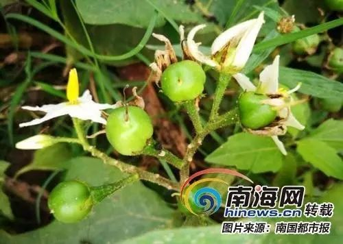 海南茄属茄科植物,茄科植物发生中毒的实例亦极常见,但死亡不多。含多种类型的有毒化学成分,具有多方面的毒理作用,是有毒植物中最重要的科之一,茄科植物中毒常因误服或小孩误食其果以及牲畜食叶等所致,茄属植物中毒表现为胃肠刺激和中枢神经系统的抑制,如恶心、呕吐、腹泻、腹痛、呼吸和心跳先快后慢、昏迷。
