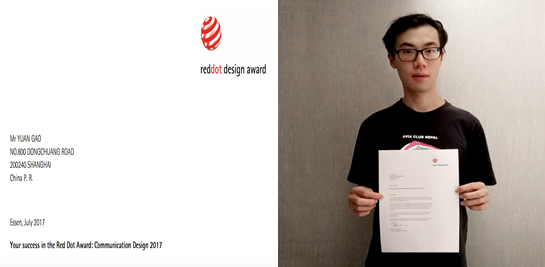 2017年度国际设计领域最大最具影响力设计竞赛、世界三大设计奖之一红点奖评选结果日前揭晓,上海交通大学媒体与设计学院设计系视觉传达专业本科二年级的高远的创作作品以精彩的视觉表现赢得评审一致认同,在八千多份来自全球50多个国家设计师的参赛品的角逐中脱颖而出,勇夺红点奖桂冠。
